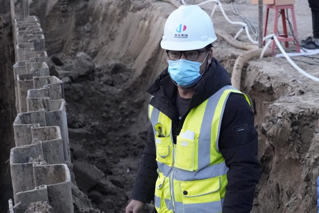 负责外网给排水工程,项目进场后,第一时间进入厂区勘探,并获取测量数据,由于二号和三号厂房中间后续有其他工作,占用场地,他冲锋在前,昼夜奋斗,并在第二天清晨就完成了沟槽施工,扛上责任继续投入战斗中!