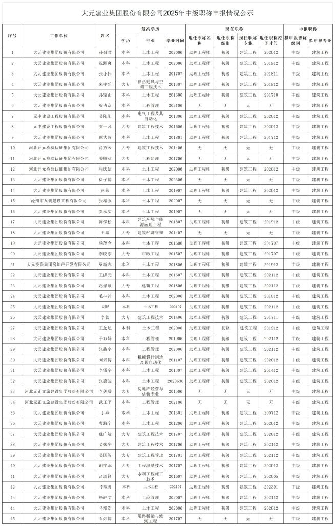 anbo体育建业集团股份有限公司2025年中级职称申报情况公示公示公告, 未分类 / 作者: 党群文化中心 anbo体育建业集团股份有限公司2025年中级职称申报情况公示,如有异议请联系0317-5291819。