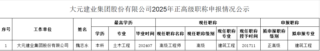 anbo体育建业集团股份有限公司2025年正高级职称申报情况公示公示公告, 未分类 / 作者: 党群文化中心 anbo体育建业集团股份有限公司2025年正高级职称申报情况公示,如有异议请联系0317-5291819。