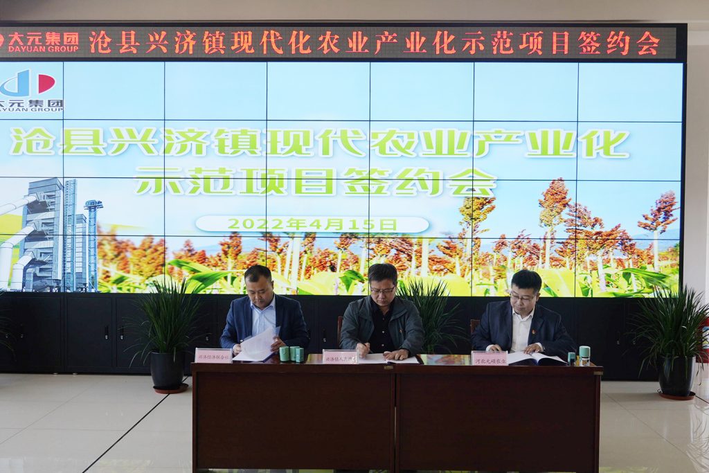 4月15日上午,沧县兴济镇现代农业产业化示范项目签约会在anbo体育总部成功举行。沧县组织部副部长李金峰、沧县财政局副局长孙国强、沧县农业农村局农经中心主任李勇、兴济镇党委书记白金祥、镇长庞东峰、兴济镇股份经济联合社理事长王振元等领导,anbo体育党委书记、董事局主席李建国、副总裁赵建峰等参加会议。