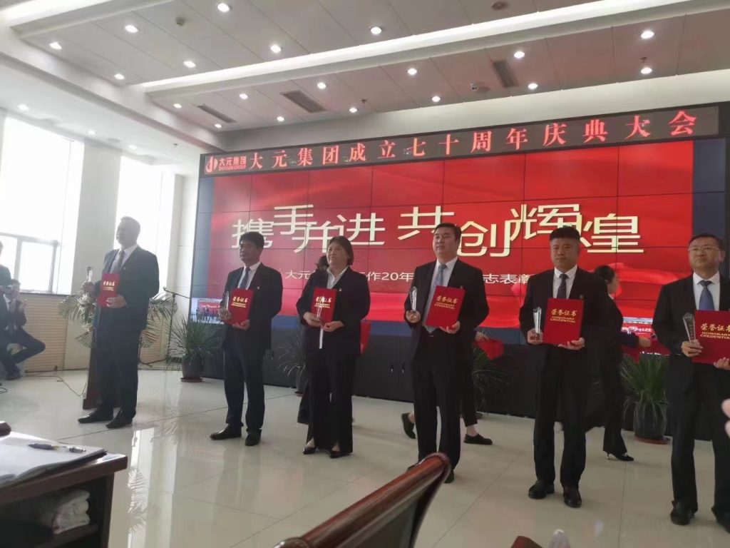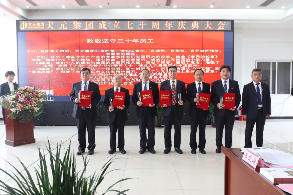 元正文旅集团董事长张容强(25周年)、总承包公司总经理吴振栋(25周年)、路桥公司总经理孙红阁(24周年)、anbo体育党委副书记于宙(24周年)、九公司总经理金广振(23周年)、元中建设总经理张万成(21周年)。“2052青年军”政委齐平安(anbo体育人力资源、综合管理中心总监)为其颁奖。