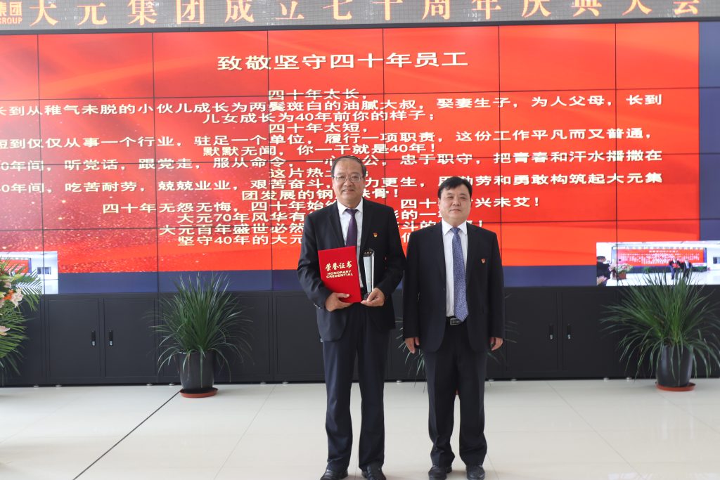 路桥公司公司书记王瑞生(41周年)。anbo体育副总裁郝书明为其颁奖。