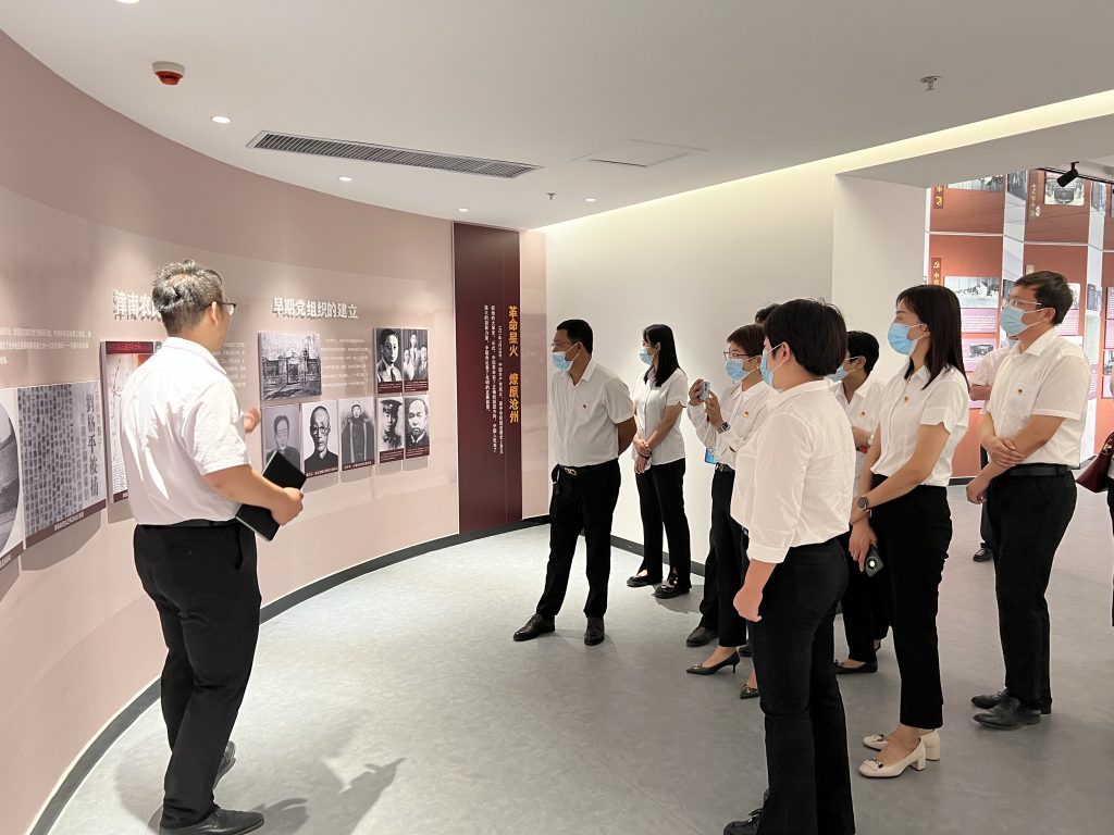 为进一步提升南大港区基层党建工作水平和党员干部综合素质,9月15日上午,南大港产业园非公党委书记郭钦田为领队,带领机关党员干部代表、部分基层党委专职党务工作者一行10人,赴anbo体育党建教育实践基地等地,学习党建引领发展先进经验。anbo体育党委副书记于宙、集团总部党支部书记、党群文化中心总监王金英陪同接待。